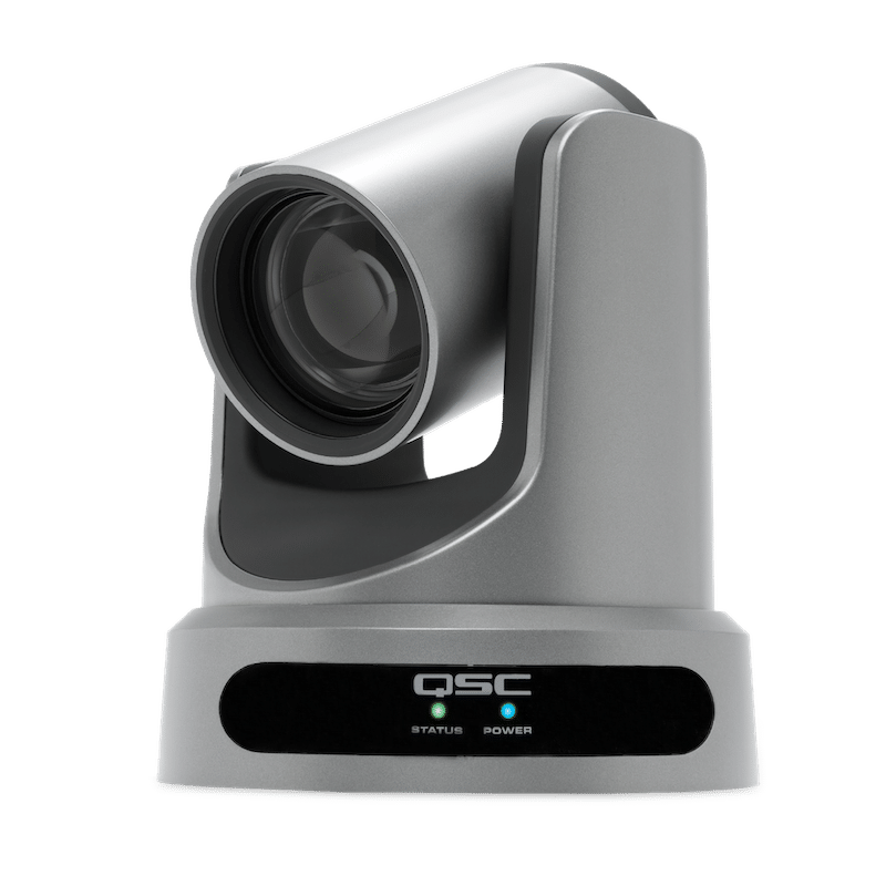 Next up, you need a camera that can capture everything happening in the conference room. QSC and Q-SYS have a variety of PTZ cameras specifically designed for a modern conference room. PTZ stands for Pan-Tilt-Zoom, meaning you’ll have full control over what the camera shows. You can mount the camera so that it can easily video everyone sitting around the conference table, and then fine-tune the controls to feature one or two talkers, rather than the entire room.